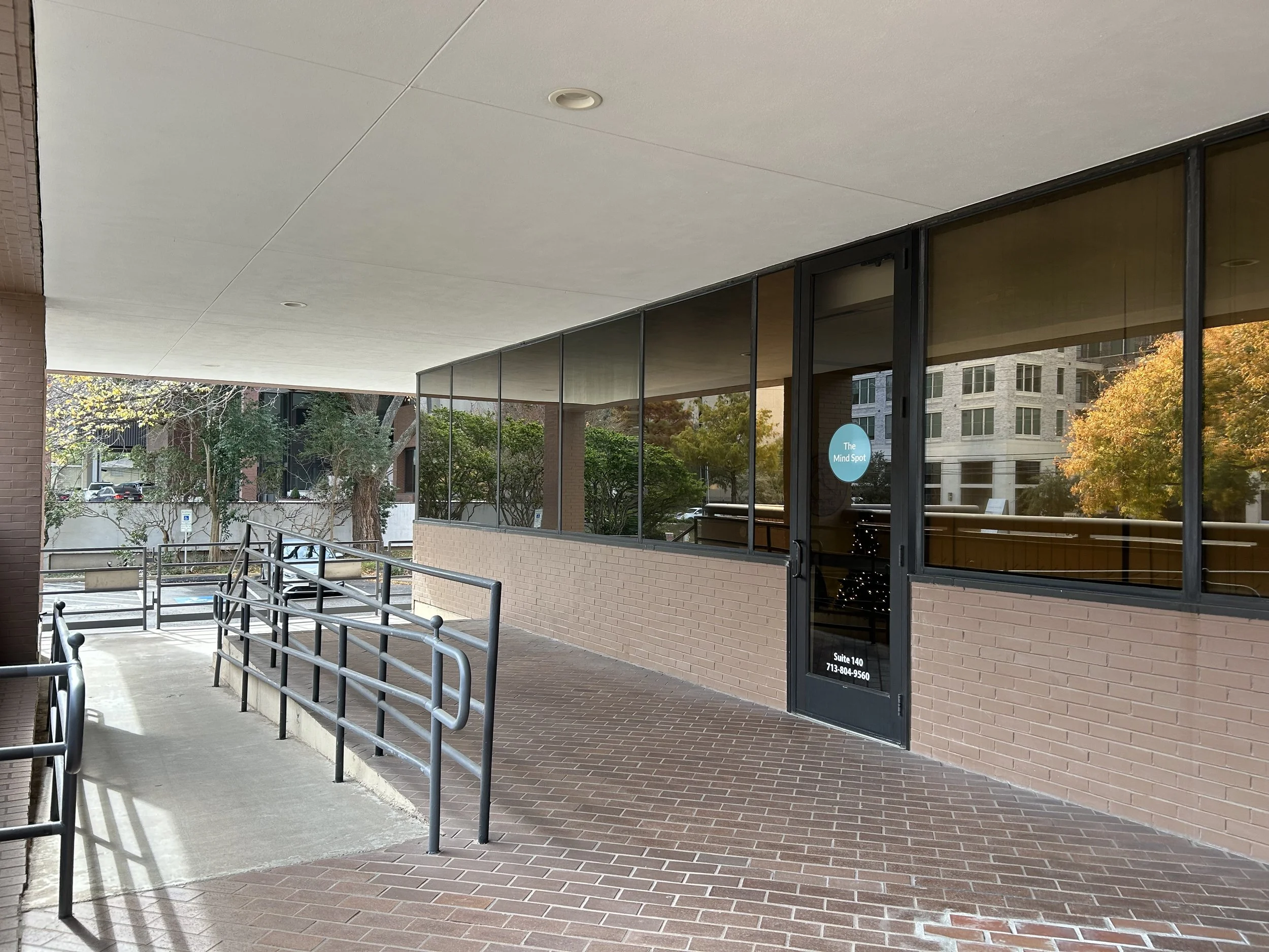 We are in a 3-story red brick building. Our office is an exterior entrance facing Weslayan. We are in the Southeast corner of the building, 1st floor. Park on the south side of the building. Parking is free. Walk up the stairs at the front of the building and you will see our door on the left. We are next to The Beauty Bar.